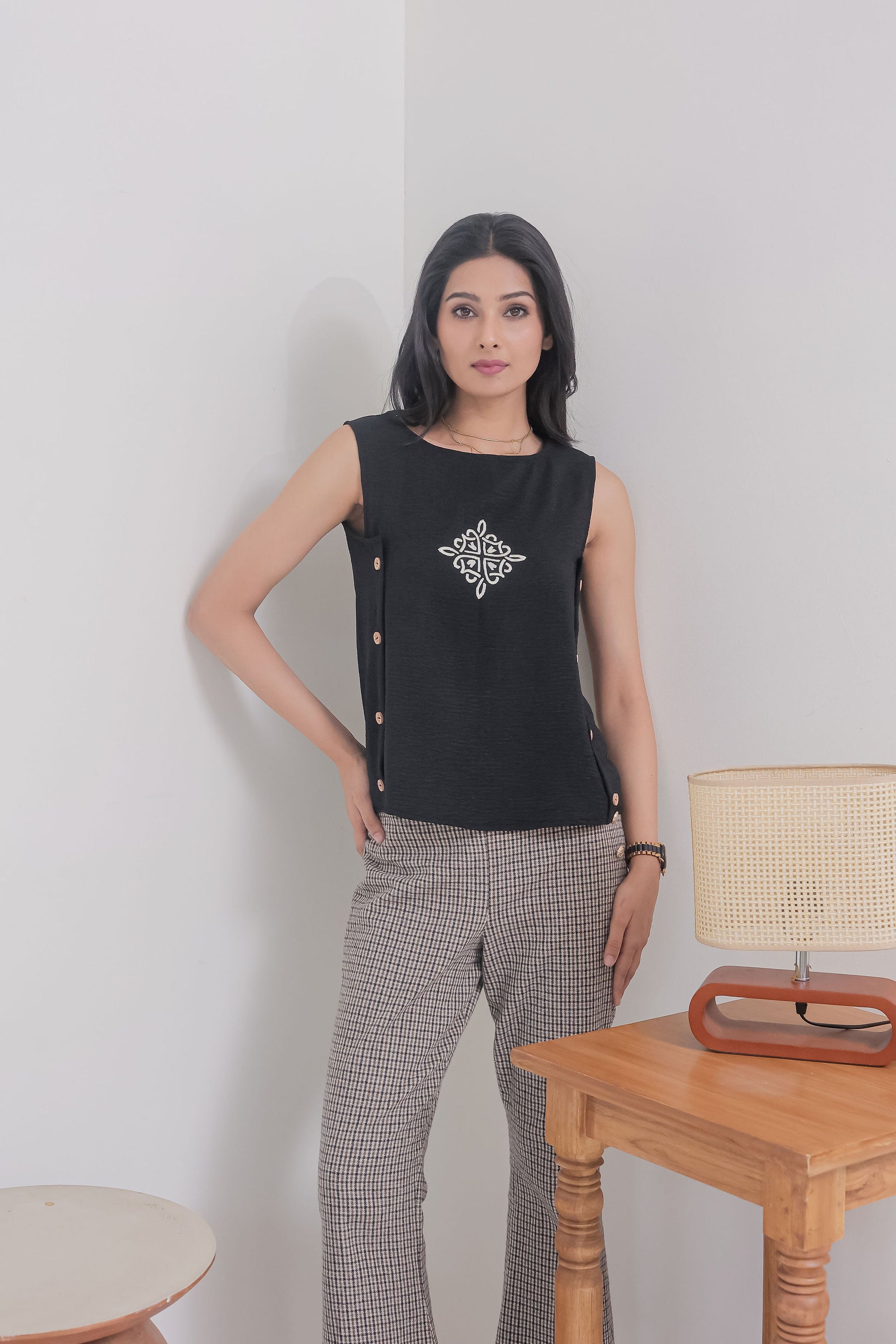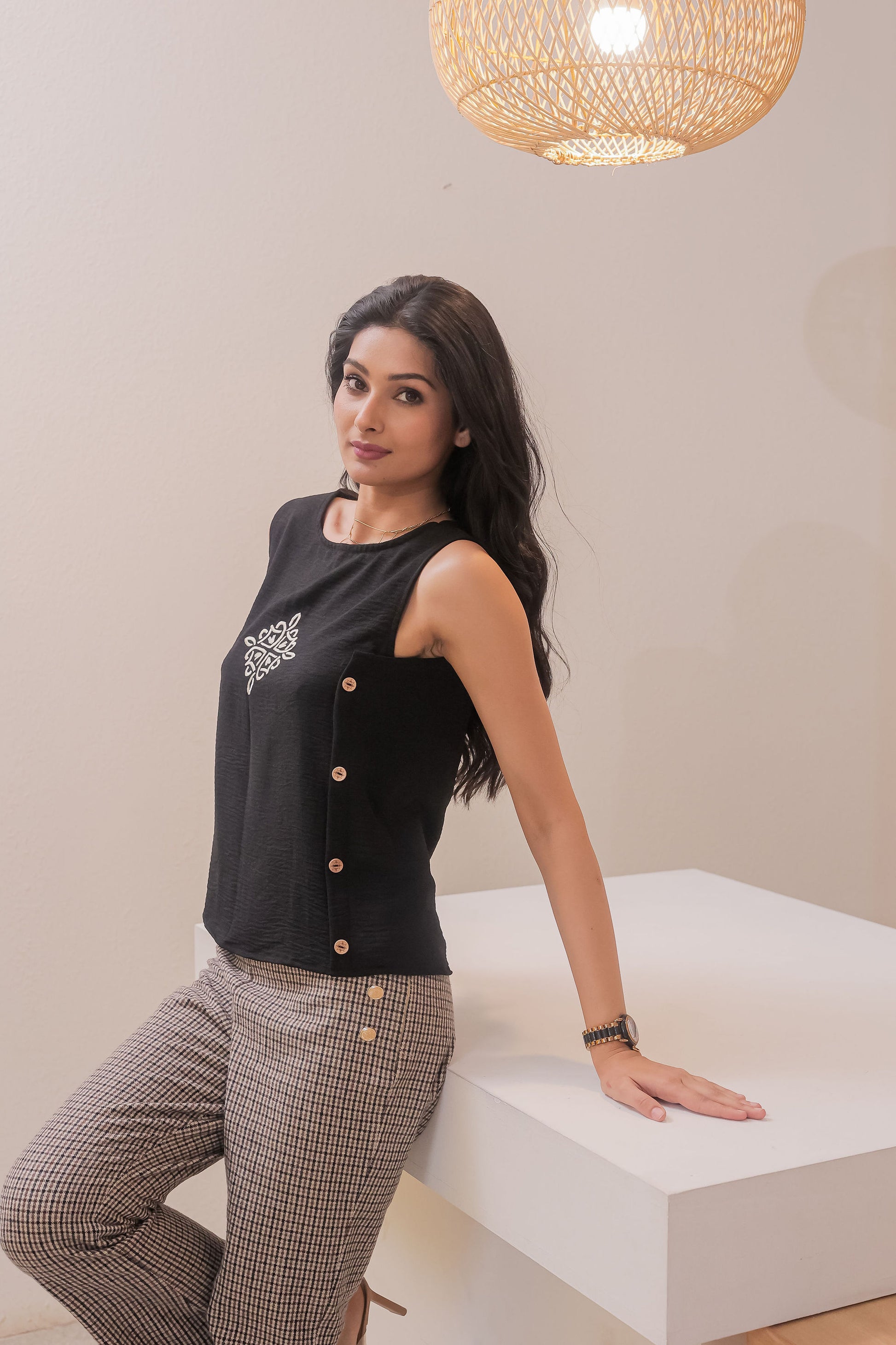 Black wooden buttons and embroidered top – Statement Summer Wear