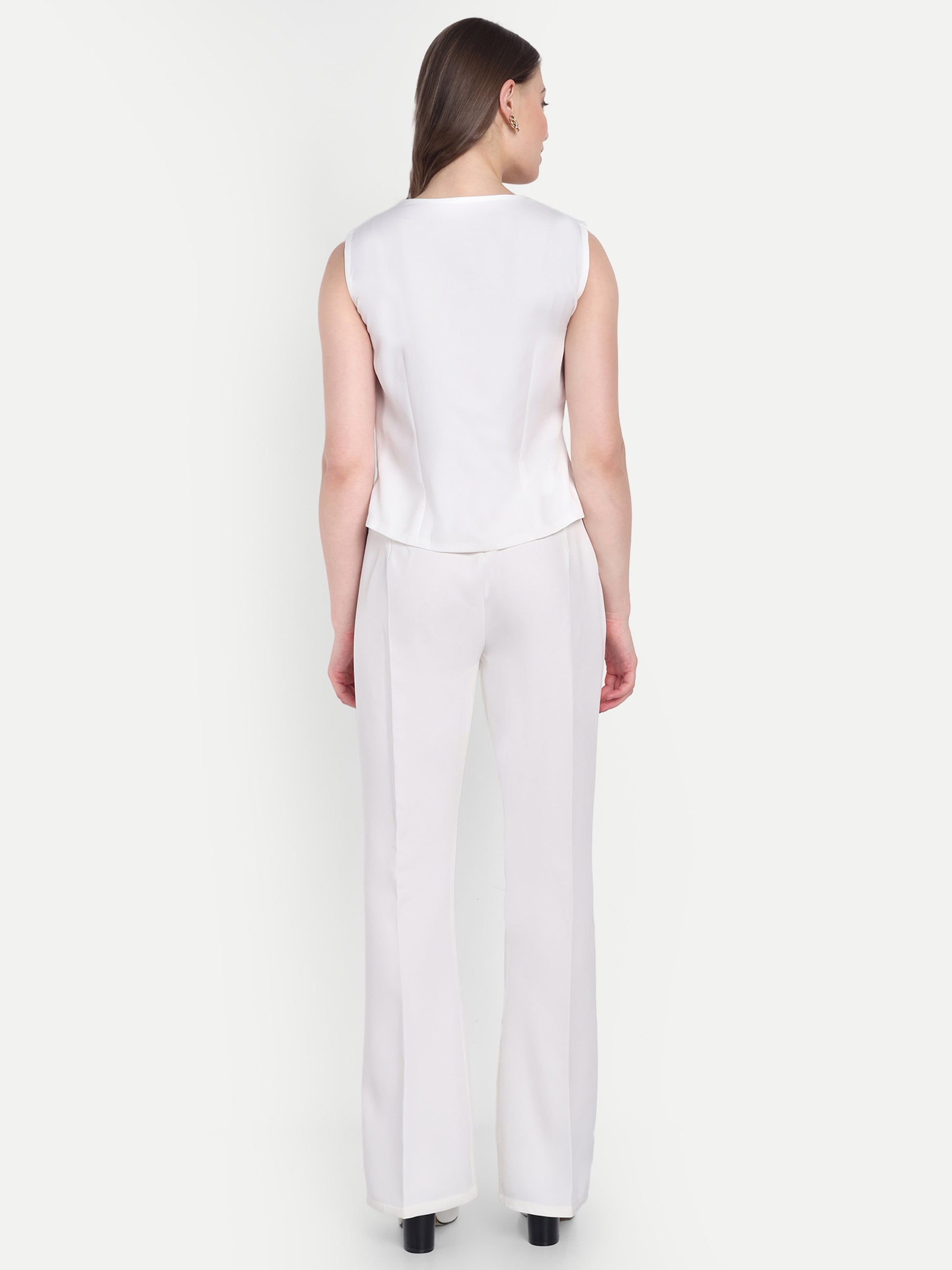White crepe pants with gold buttons ESWPA0013-WHTGB