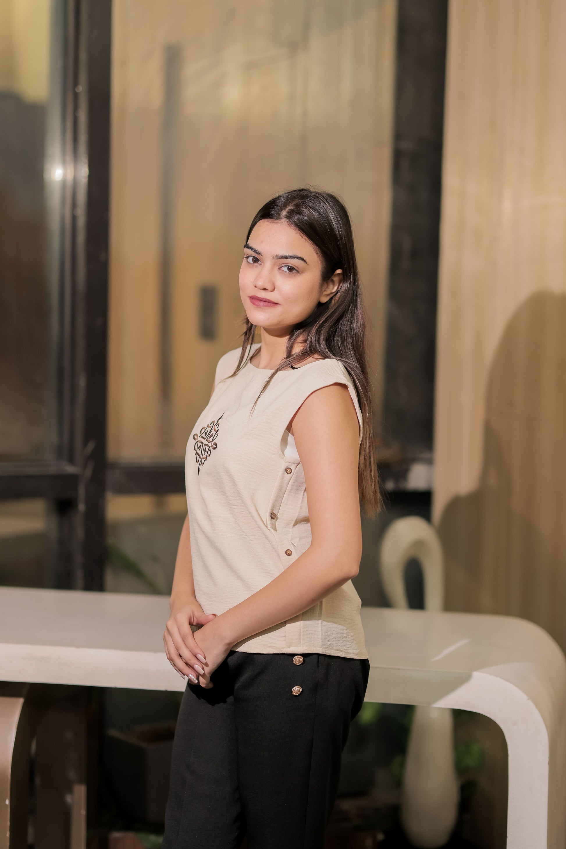Step into effortless elegance with our Cream Linen Top, adorned with delicate brown embroidery. Crafted in breathable linen, this piece combines comfort with artisanal charm. Its timeless neutral shade and intricate detailing make it perfect for casual daywear or semi-formal outings.