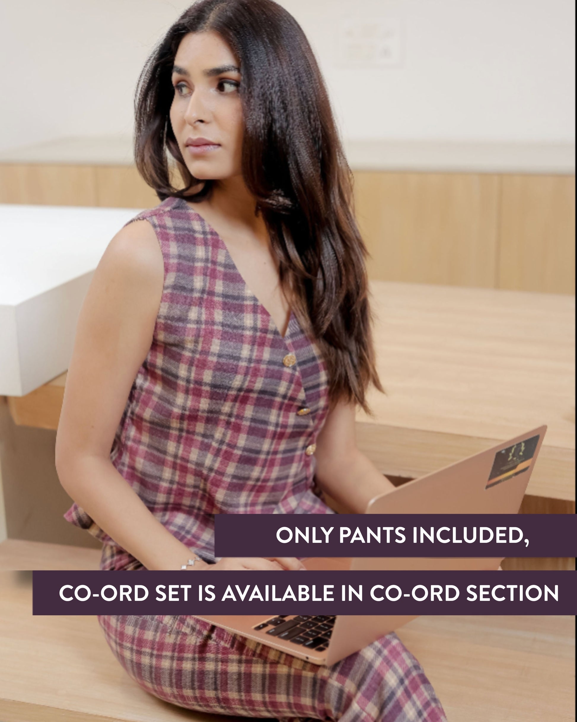 Maroon cream check pants ESWPA0008-MRNGB