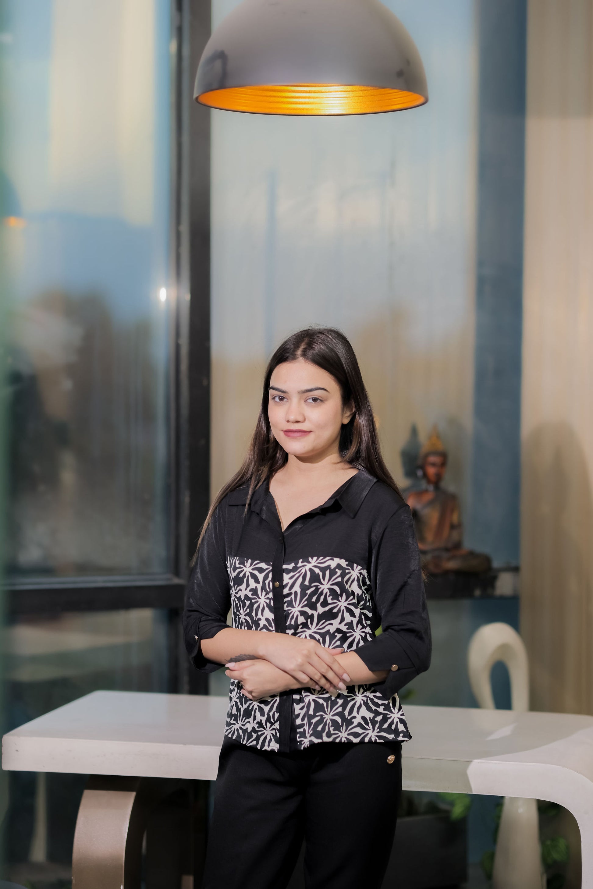 Tuck it into high-waisted trousers with heels for a sharp office look, or leave it untucked over jeans for a chic casual vibe.