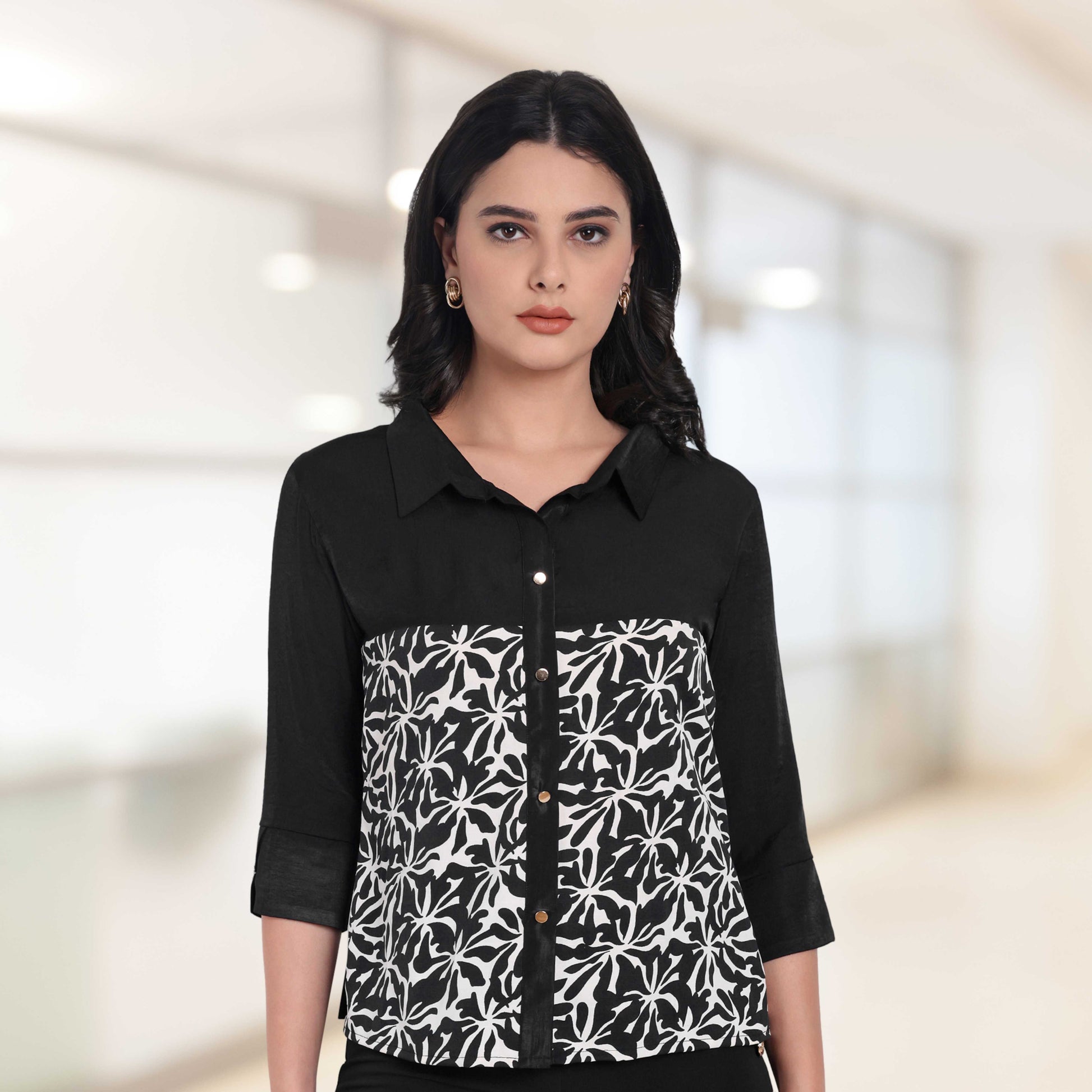 Make a bold yet refined style statement with our Black Plain & Printed Satin Shirt, crafted in a luxurious two-fabric design. The sleek black satin complements the striking printed panel, adding texture and contrast for an elevated look. This shirt transitions effortlessly from office hours to evening plans, offering sophistication with a hint of flair.