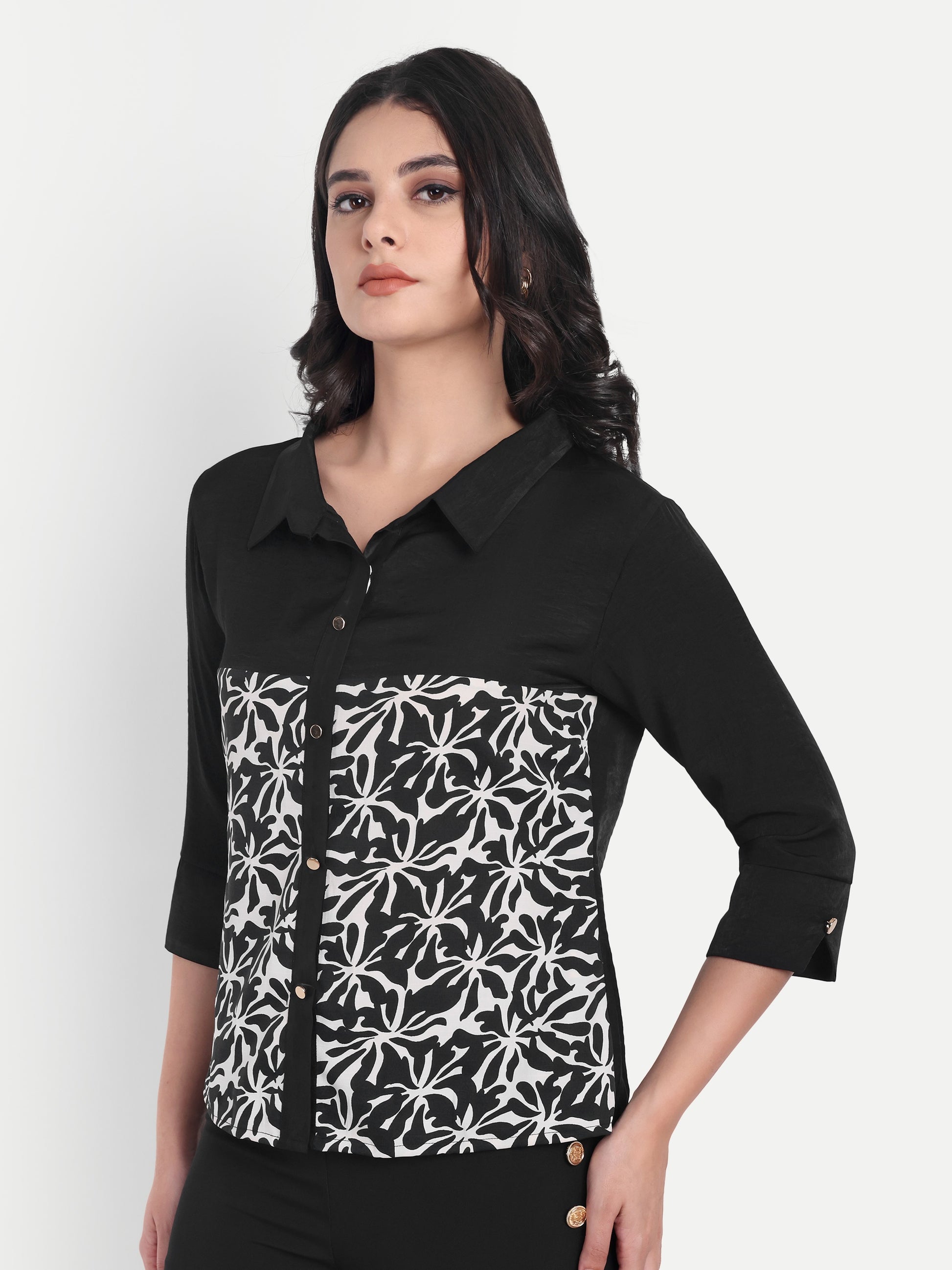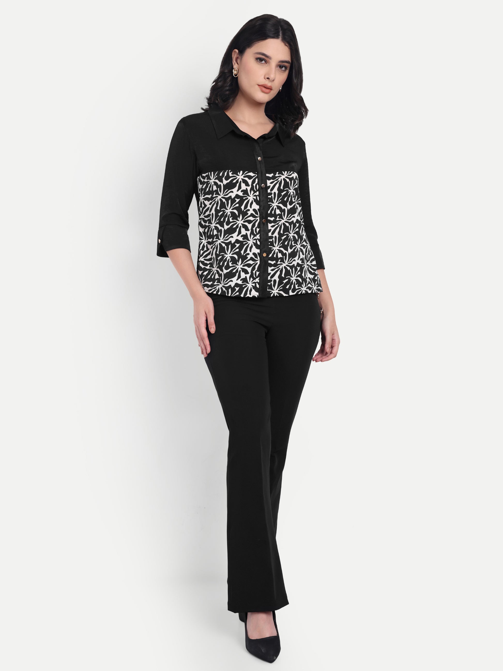 Black plain and black printed shirt ESWSH0004-BLKPR