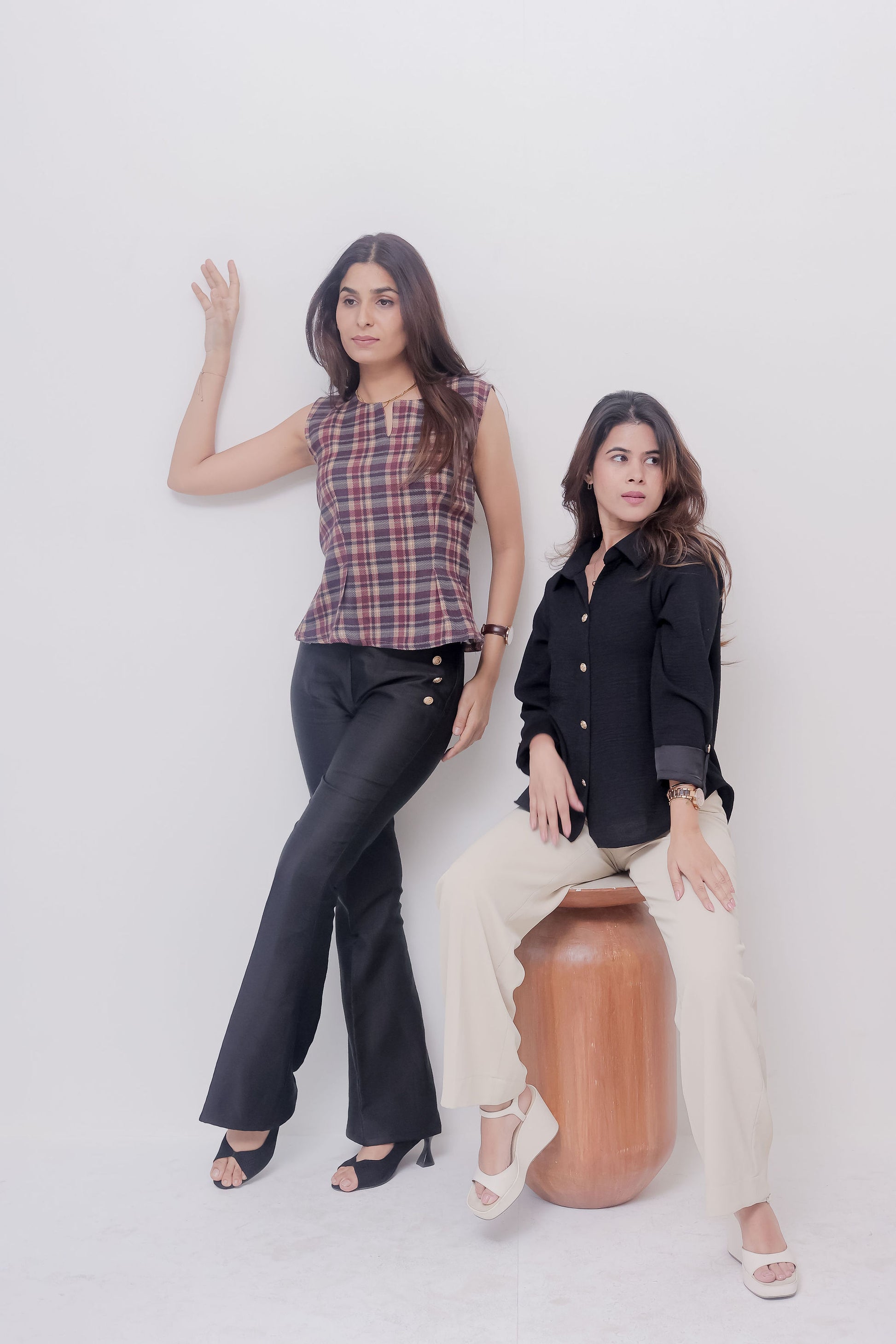 Tuck this top into high-waisted trousers or black skinny jeans to highlight the waist-defining peplum. Add block heels and a structured handbag for a chic, office-ready look—or swap for sneakers and a denim jacket for effortless weekend vibes. Gold or brass-toned accessories pair beautifully with maroon for added warmth and elegance.