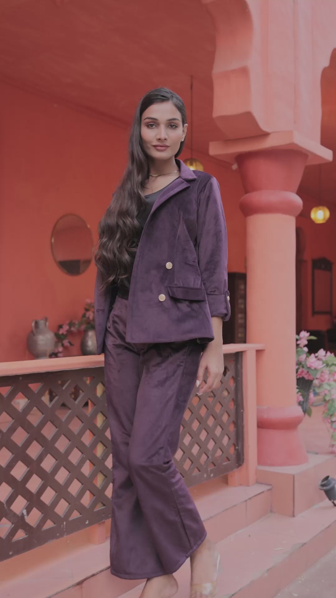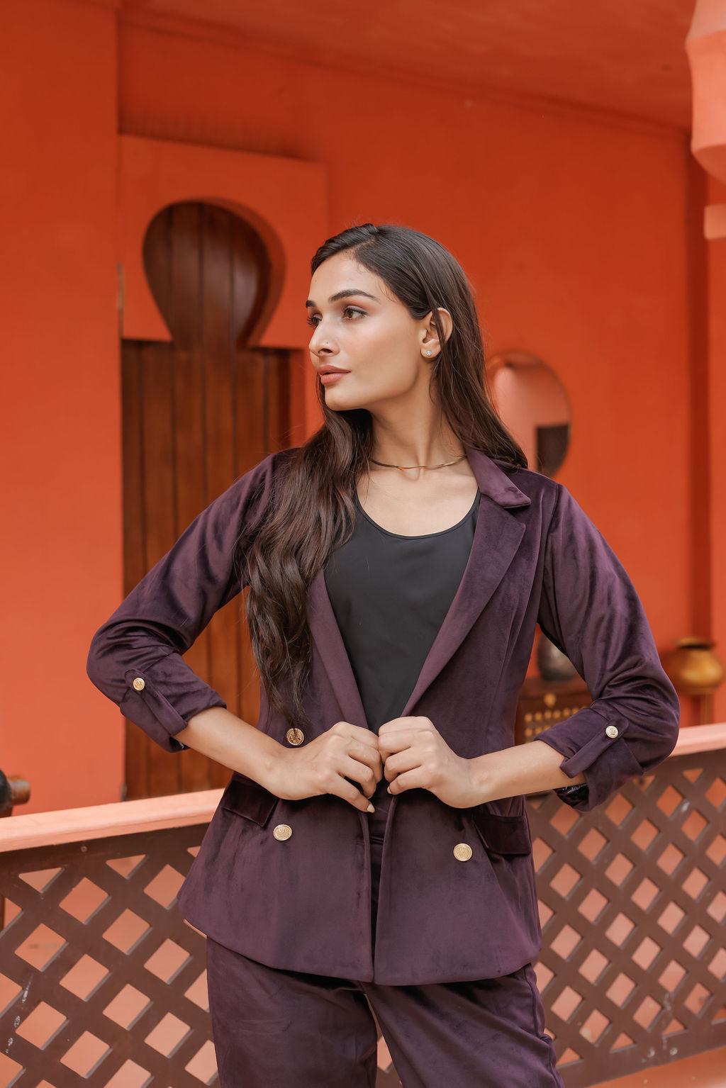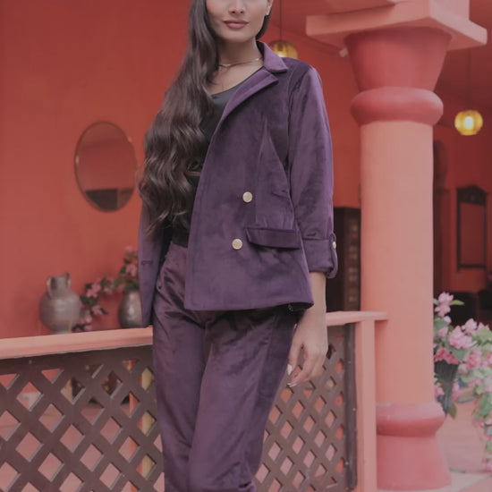 Make a regal statement with our Purple Velvet Coat, a luxurious piece that embodies elegance and sophistication. Crafted from rich velvet fabric, this coat is adorned with gold detailing buttons, adding a touch of opulence to its refined silhouette. The deep purple hue exudes confidence and grace, making it the perfect choice for both formal events and elegant evening outings.